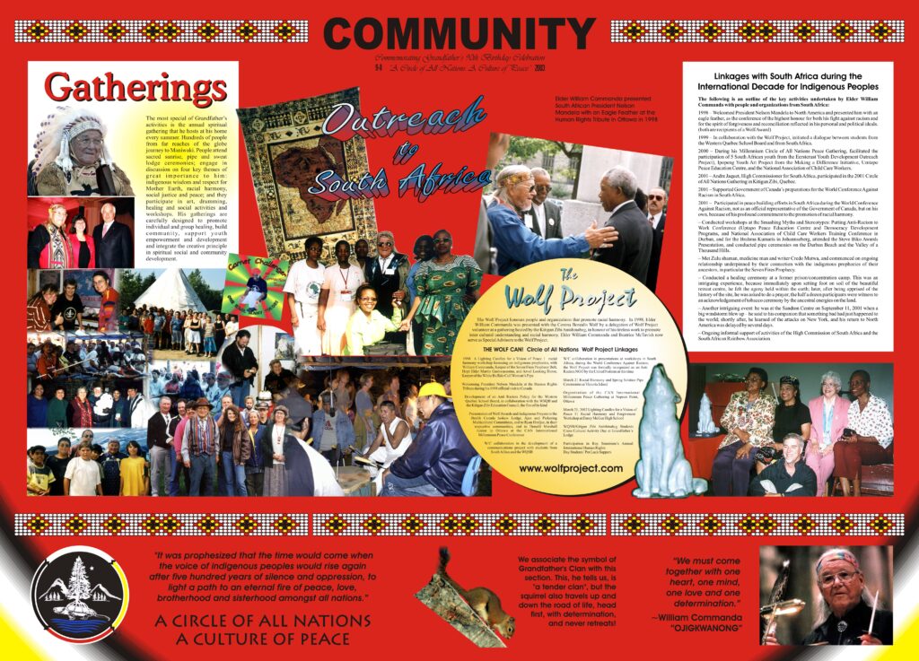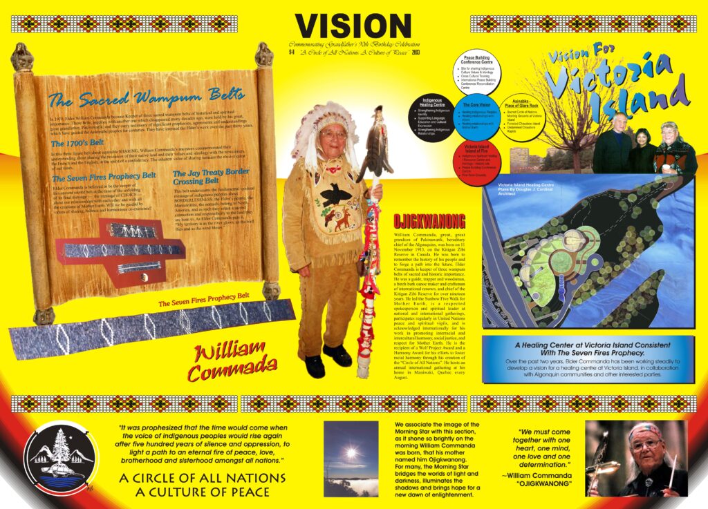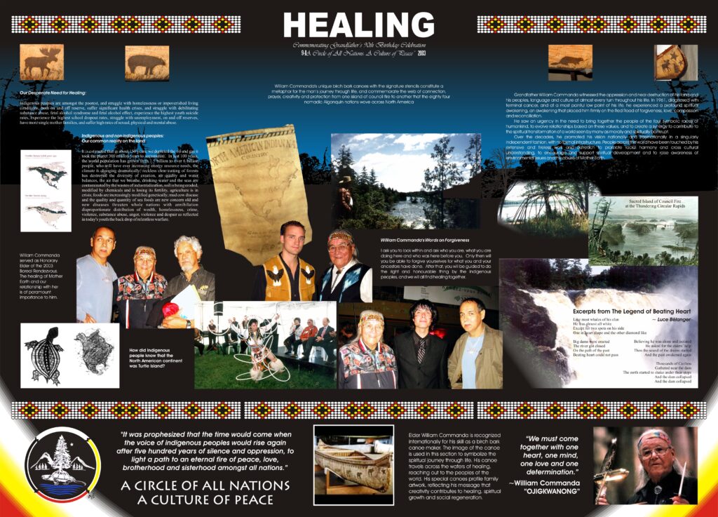 2003 – On display at the Canadian Museum of Civilization on 9-11-2003, these 40″x 50″ posters depict the life and work of Grandfather William Commanda in commemoration of his 90th birthday: