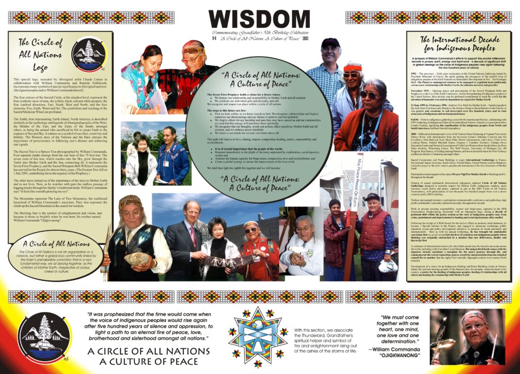 NOTE: All materials on the Circle of All Nations and Asinabka websites, with the exception of those documents credited to specific individuals, have, since 1997, been authored by Romola V. Thumbadoo, PhD, Coordinator of the Circle of All Nations, under the names of Thumbadoo and Trebilcock, in collaboration with William Commanda, Hon. Phd (University of Ottawa and l’Université de Québec en l’Outaouais), Officer of the Order of Canada, till August 3, 2011, and alone since this date. Please acknowledge the use of any material in writing.